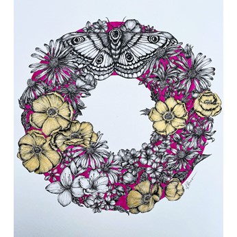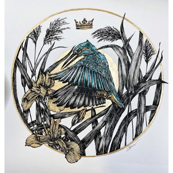 | Medium: | Indian Ink with Gold Foil on Paper |