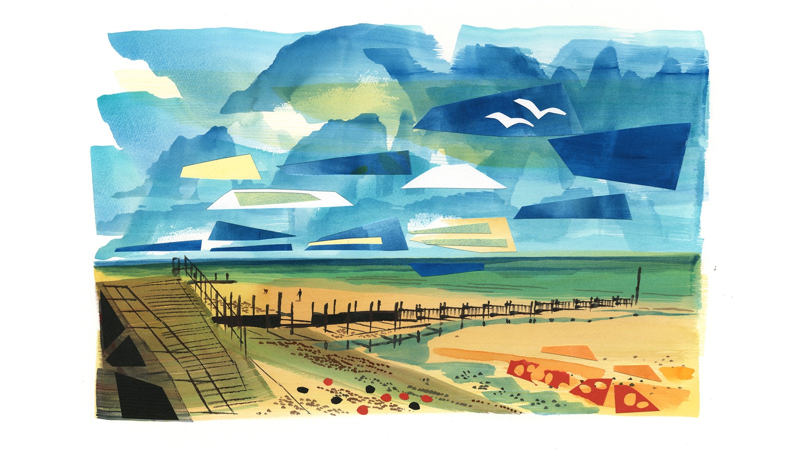 - Gouache and Paper Collage on Paper